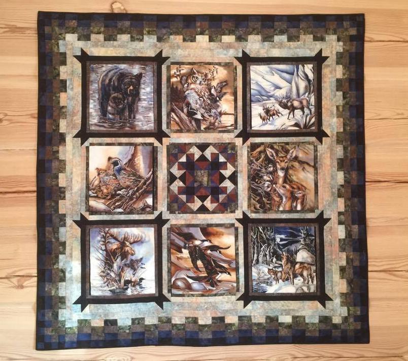 I purchased this quilt kit in Alaska some years ago, and it is now up in one of the bedrooms in my mountain cabin in Norway. A great memory from a fantastic trip.